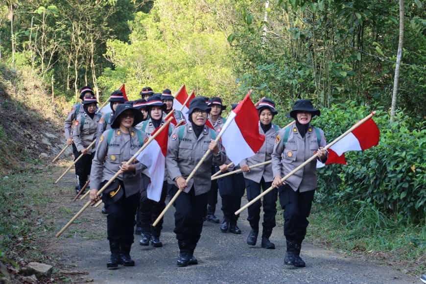 Dukungan penuh dari para polwan yang tampil di puncak Gunung Limo sebagai wujud nyata kesatuan Polwan dalam menjaga keamanan dan kesejahteraan masyarakat.